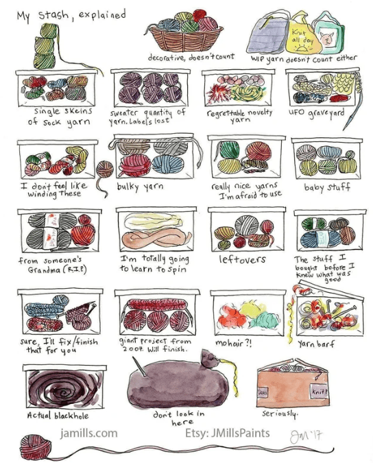 For our February meeting, we’ll be discussing stash management! We’ll be sharing tips from the experts, as well as sharing our own stash do’s and don’t’s.