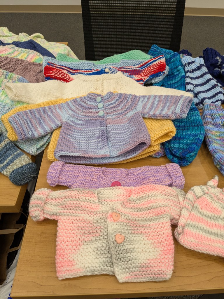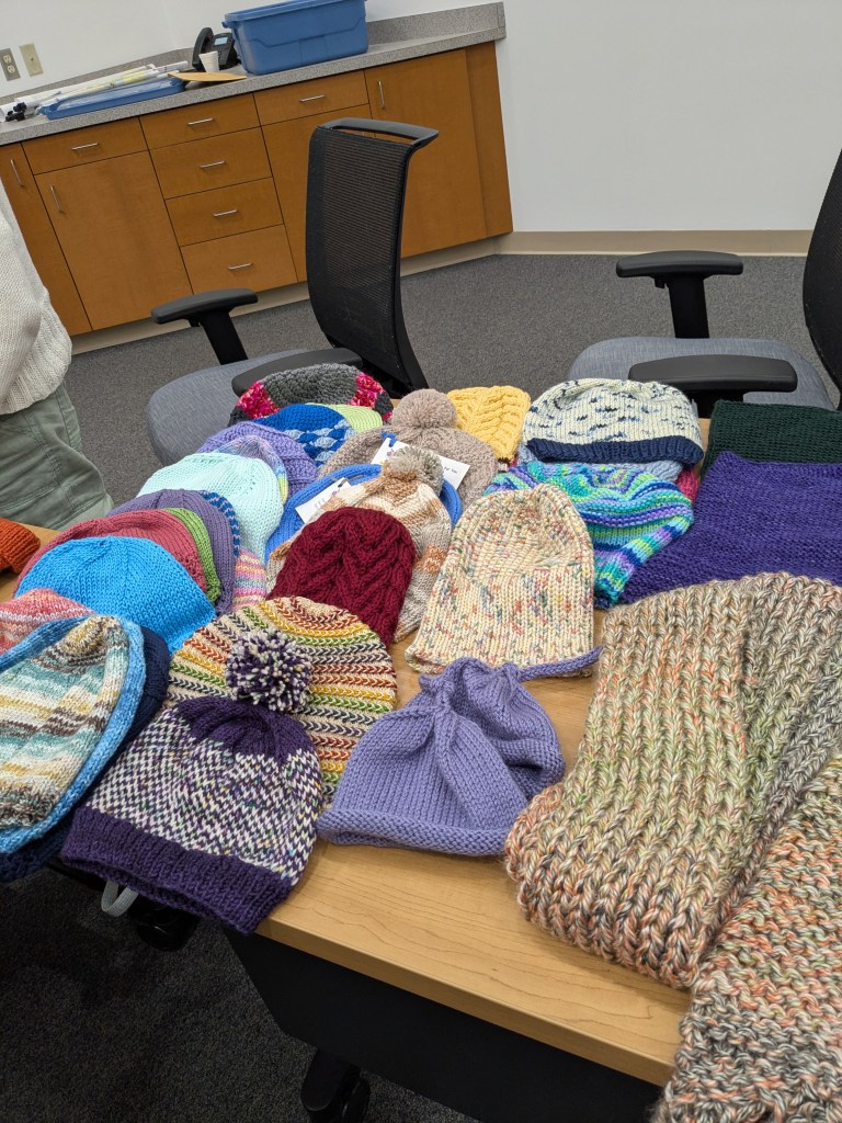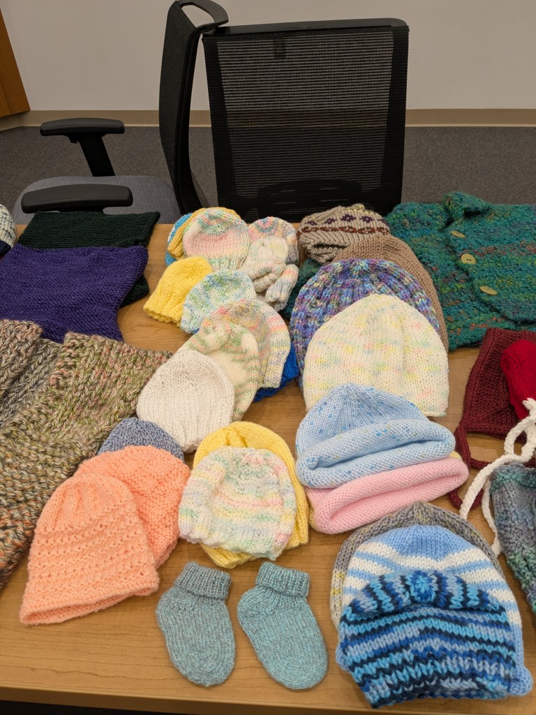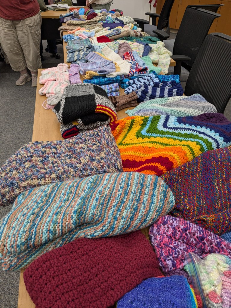Thank you to everyone who joined us at our October 2025 Philanthropy Knitting meeting, and a big thank you to everyone who donated things this year! October marks the start of when many of the warm items are needed, so please feel free to continue to knit and crochet items to donate, and we will make sure they go to the organizations who can get them to those who need them! Here are all the lovely knit and crocheted items we received this year: